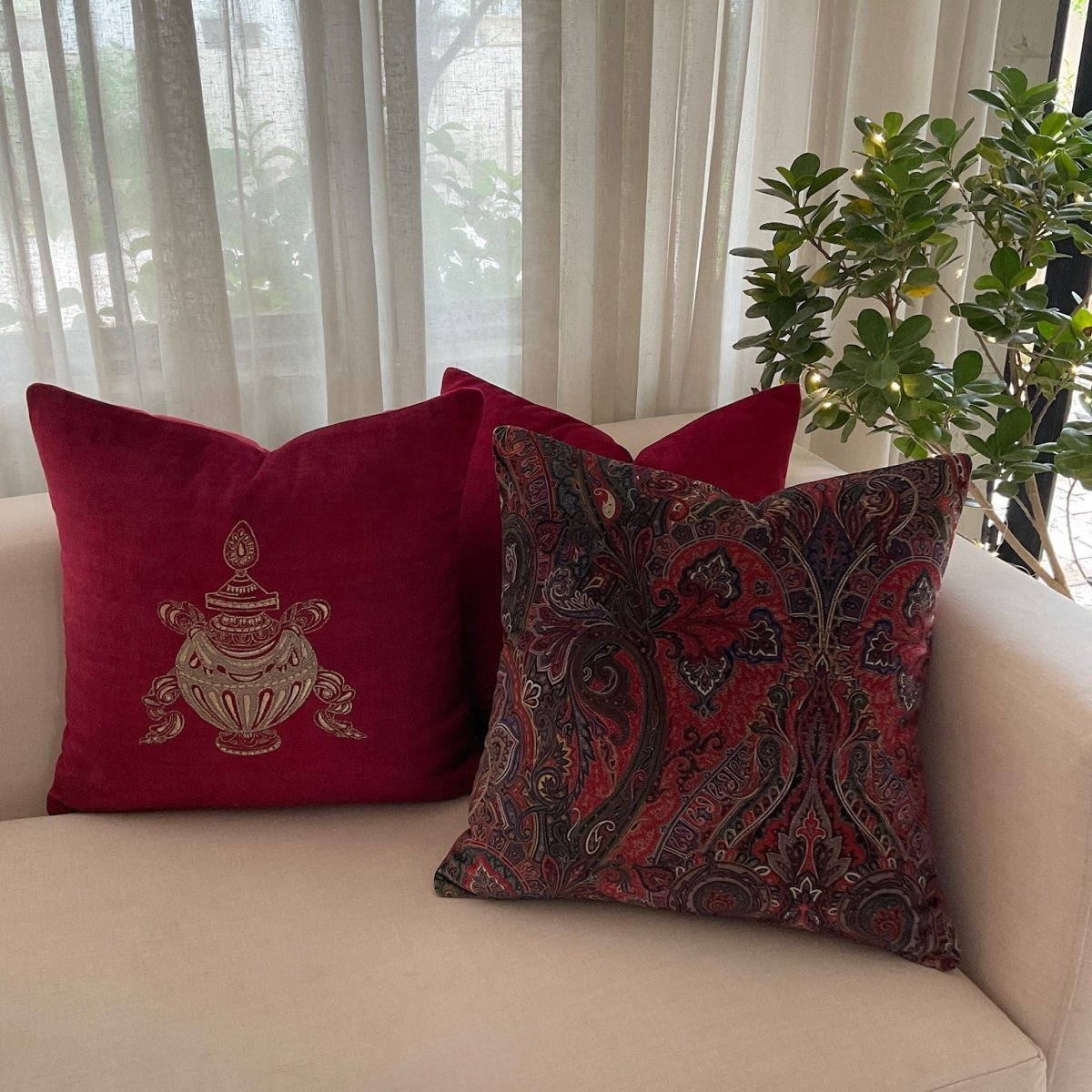 Swirling with fiery reds, deep indigos, and earthy greens, Wonderland is a richly detailed paisley piece that feels as infinite as the night sky. Its intricate design ripples across the surface like constellations woven into fabric, striking yet timeless.