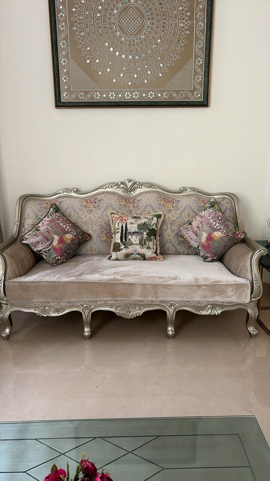 - Colours: Cream. shades of green, and a slight touch of pink